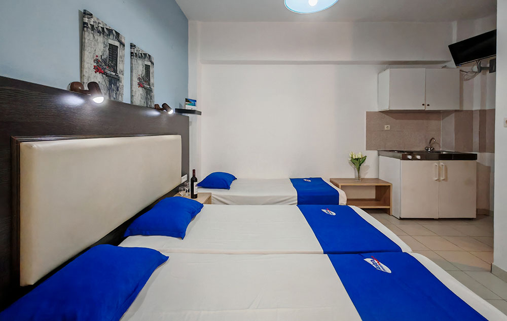 MAKSIMALAN BROJ OSOBA - Maksimalan broj osoba predstavlja broj osoba koji može boraviti u određenom tipu smeštaja. Prilikom prijave se navode imena svih putnika (bez obzira na uzrast) koji će boraviti u određenoj smeštajnoj jedinici. Pored navedenog broja osoba, bez posebne doplate i bez sopstvenog ležaja, u većini smeštajnih jedinica može boraviti dete uzrasta do 5.99 godina. U kojim kućama dete uzrasta do 5.99 godina može boraviti bez doplate i bez sopstvenog ležaja, molimo Vas da se detaljnije informišete u Vašoj turističkoj agenciji. Na upit, dete starije od 6 godina, a mlađe od 11.99 godina, može boraviti pored maksimalnog broja osoba u apartmanu bez sopstvenog kreveta uz doplatu od 5 do 10 evra po danu.